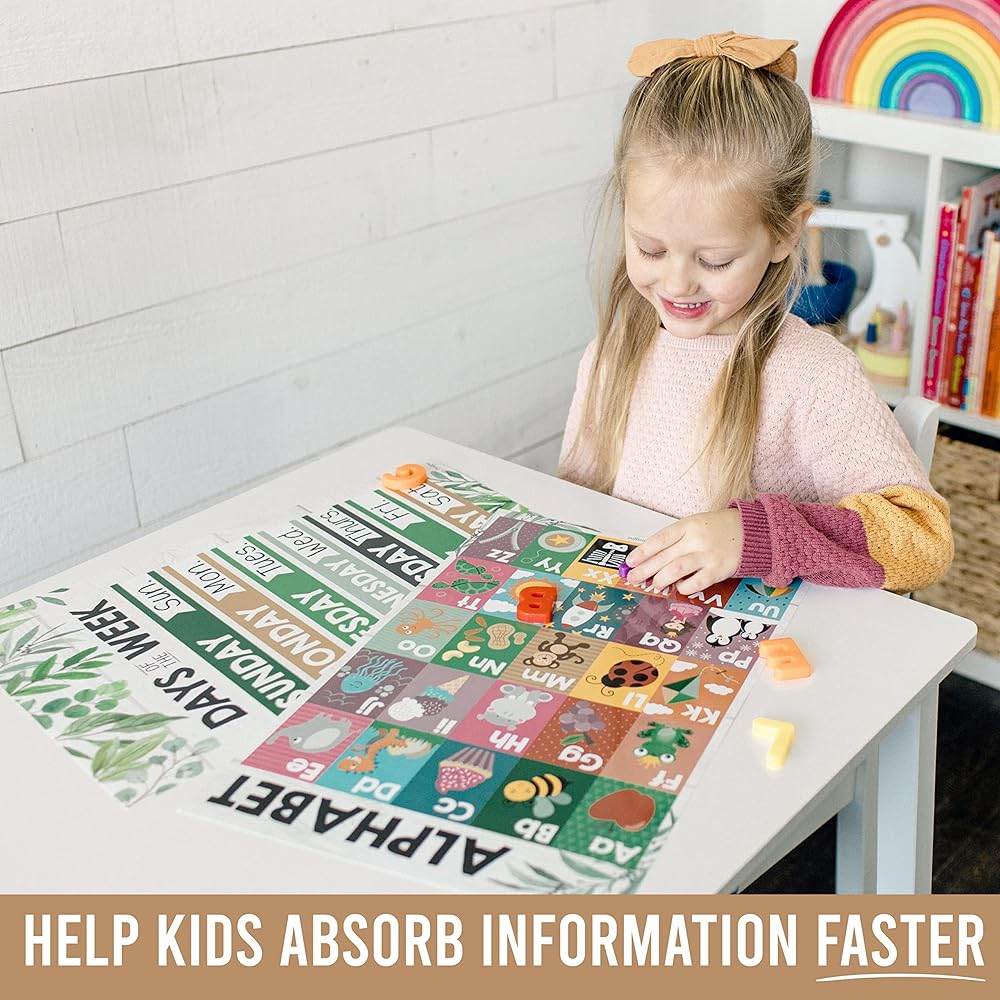Help Kids Absorb Information Faster; These toddler posters educational charts help kids absorb knowledge like a sponge; Skyrocket kids' attention spans and focus with these engaging toddler learning posters laminated large charts