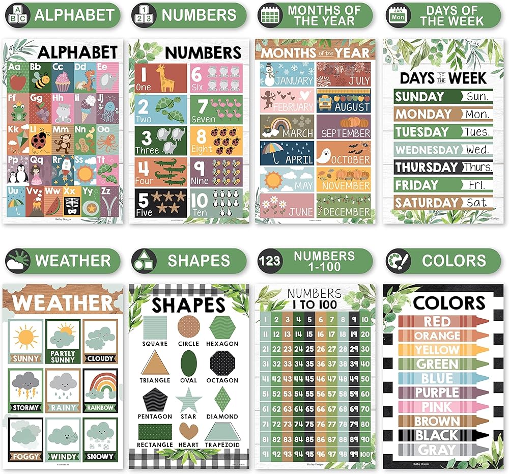 Bring Your Classroom To Life; Use these educational preschool posters as learning charts for toddlers 1-3, learning posters for kids ages 3-5, learning posters for kids ages 5-7, or rustic kindergarten posters for homeschool posters alphabet poster for toddlers