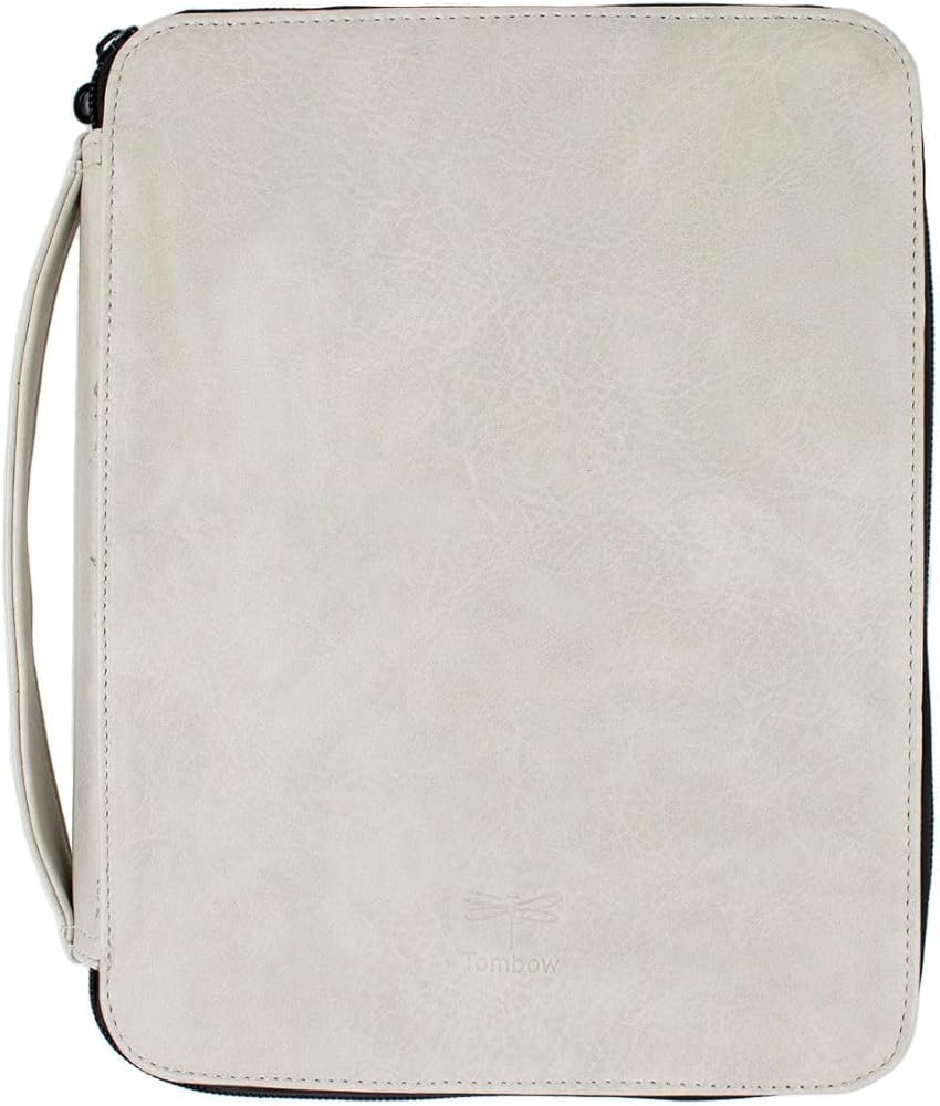 Store and organize your favorite Tombow products with this portable marker storage case. Features two divided compartments with zipper closures so your items easily stay in place. Designed to fit Tombow products, the case includes 54 elastic loops that hold markers, pens, and pencils. Interior zippered pouch holds bulky accessories and is made of see-through mesh, allowing you to quickly see what's inside. Carry handle for easy portability. Faux leather exterior is easy to wipe clean. Available in two colors – Oyster and Black.