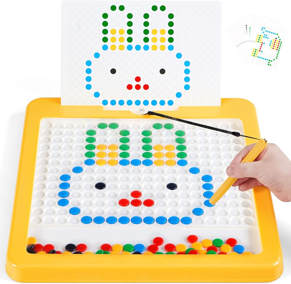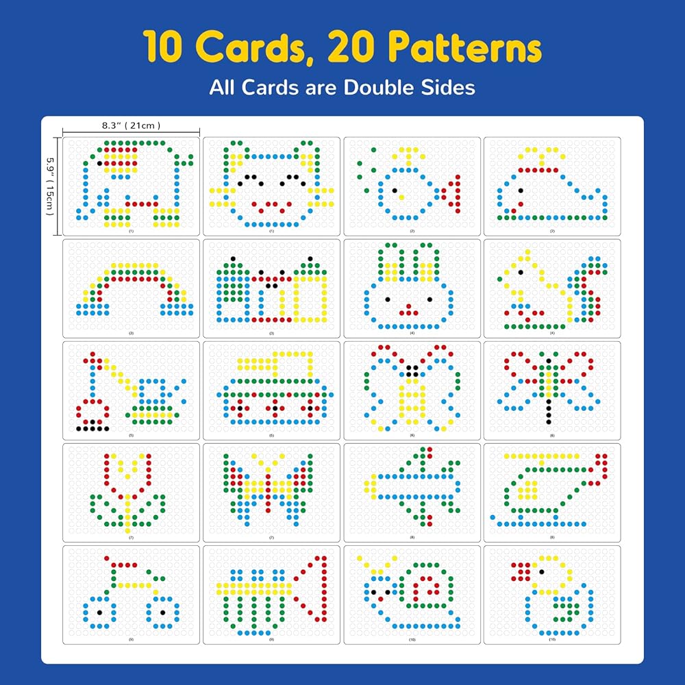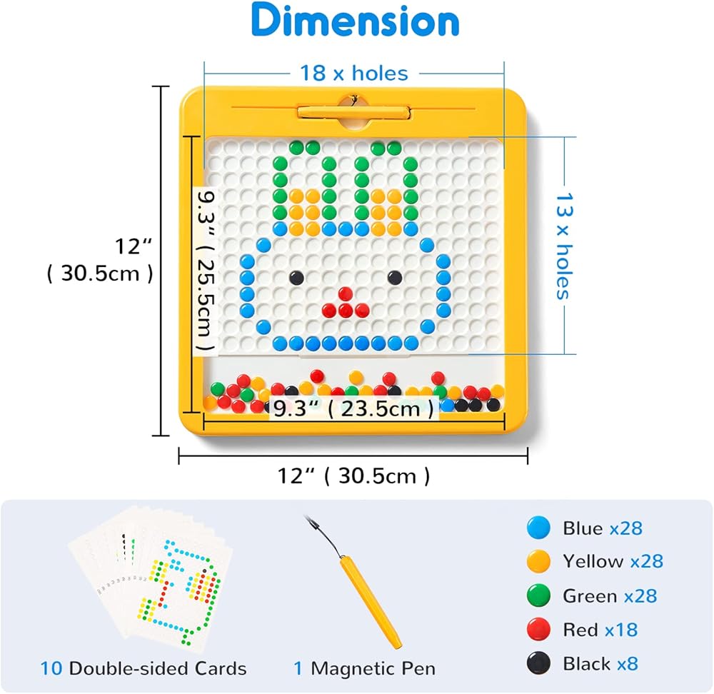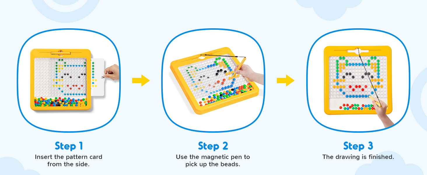 Fun to Play: Insert the patterned card, children use the magnetic pen to pick up brightly colored beads into the corresponding positions. The variety of patterns effectively captures children's attention and stimulates their creativity by starting from easy to difficult.