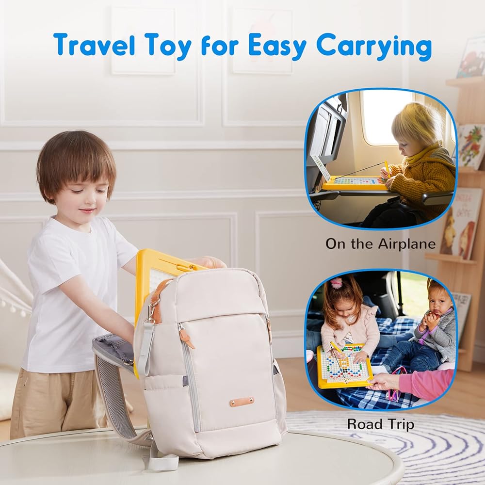 Excellent Travel Toy: Our magnetic drawing board measures 12" x 12" x 1" (30.5 x 30.5 x 2.5 cm). The lightweight and suitable size makes it easily fit in any backpack, and perfect for on-the-go playtime. An ideal birthday or Christmas toy gifts for kids aged 3+.