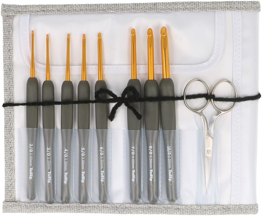 (Set Contents) Set Includes: Crochet (2/0, 3/0, 4/0, 5/0, 6/0, 7/0, 8/0, 10/0), high-grade craft scissors (silver handle) , 2 needles, spooner, case.