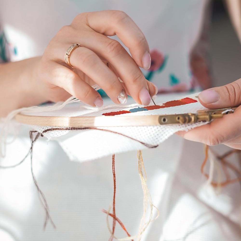 So easy to use; you just need to open the embroidery kit, and then loosen the screw of the embroidery hoop, put the inner ring under the fabric and the outer ring on the fabric, then buckle the fabric and tighten the screws and you are ready to go.