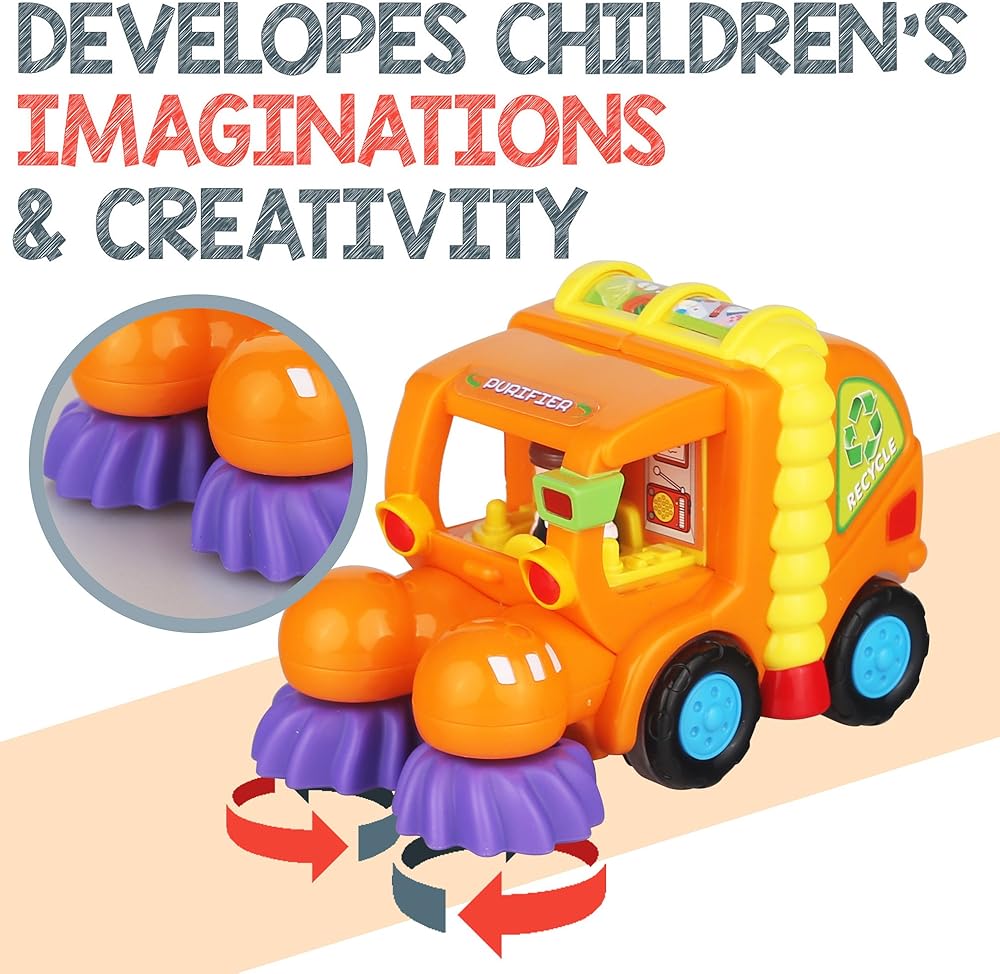 DURABLE CONSTRUCTION, SAFETY & TODDLER-FRIENDLY DESIGN - Rest assured, these funny and colorful friction toys meet all international safety standards. Crafted from durable materials and ABS plastic, these toddler toys age 1-2 are built to withstand rough play and ensure long-lasting enjoyment. The trucks are perfectly sized for little hands to grip and maneuver easily. Let your baby play in a safe and engaging way inside or outside with our reliable and sturdy toy truck set for one year olds!