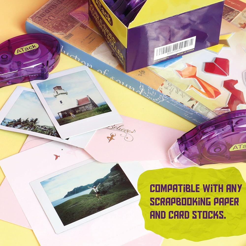 It works perfectly well with cardstocks and photos, making the ATack scrapbook tape for photos the ideal clear double-sided adhesive tape roller for arts and crafts, scrapbooking, bullet journaling, and other creative projects.