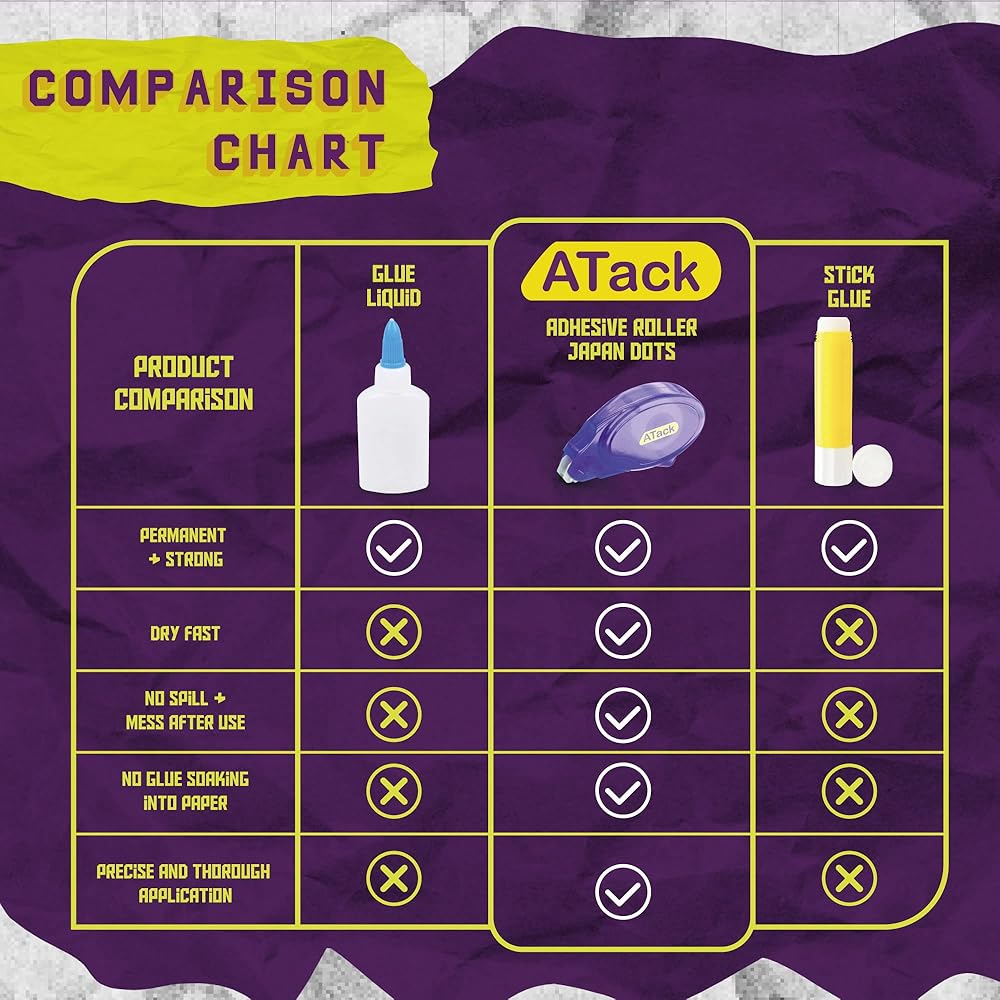 The ATack glue tape roller features a set of precise-milled axles that are stringently laboratory-checked to prevent jamming, dislodging, or unwinding so that you enjoy the full length of our tape runners without any hiccups.