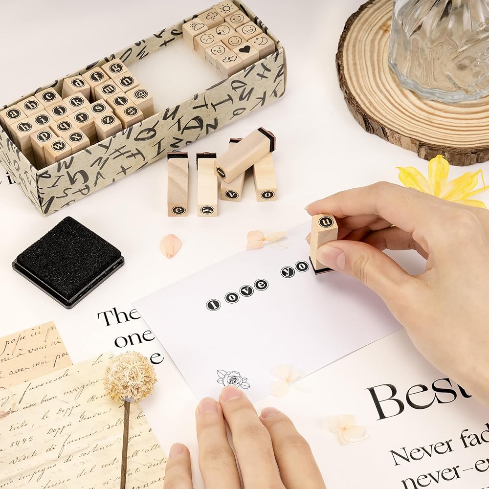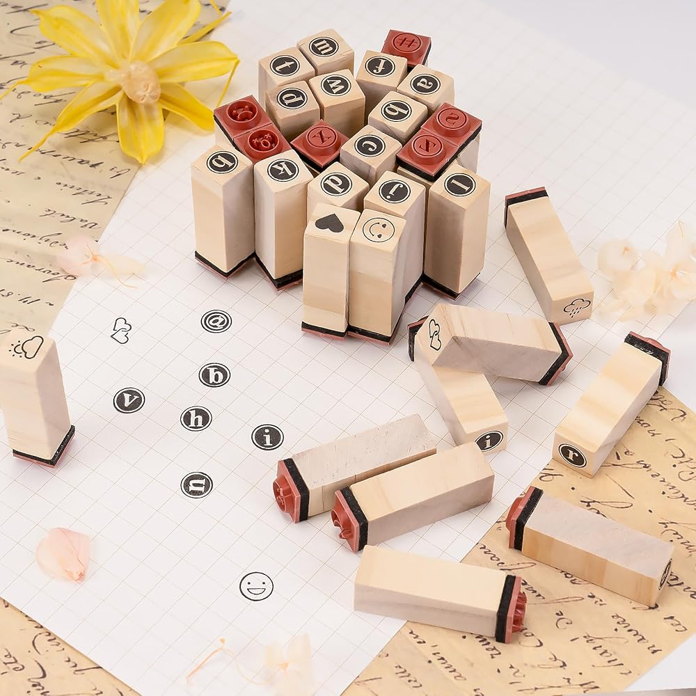 Expand your creative world with our Wooden Stamp Stamp Set - an exclusive alphabet and letter stamp set that is perfect for craft projects and scrapbooking.