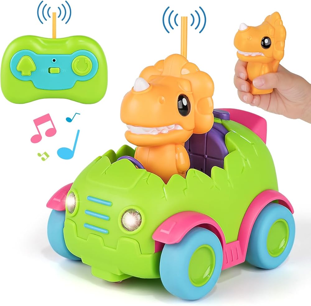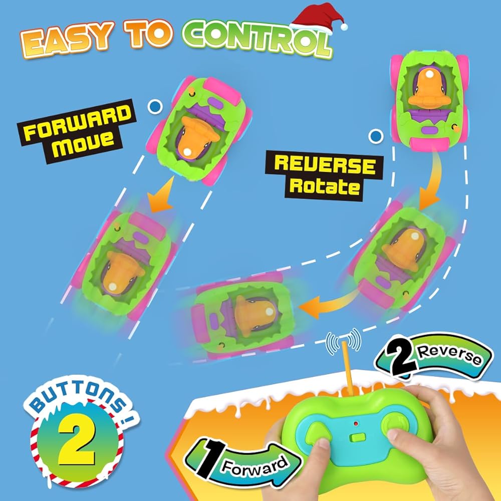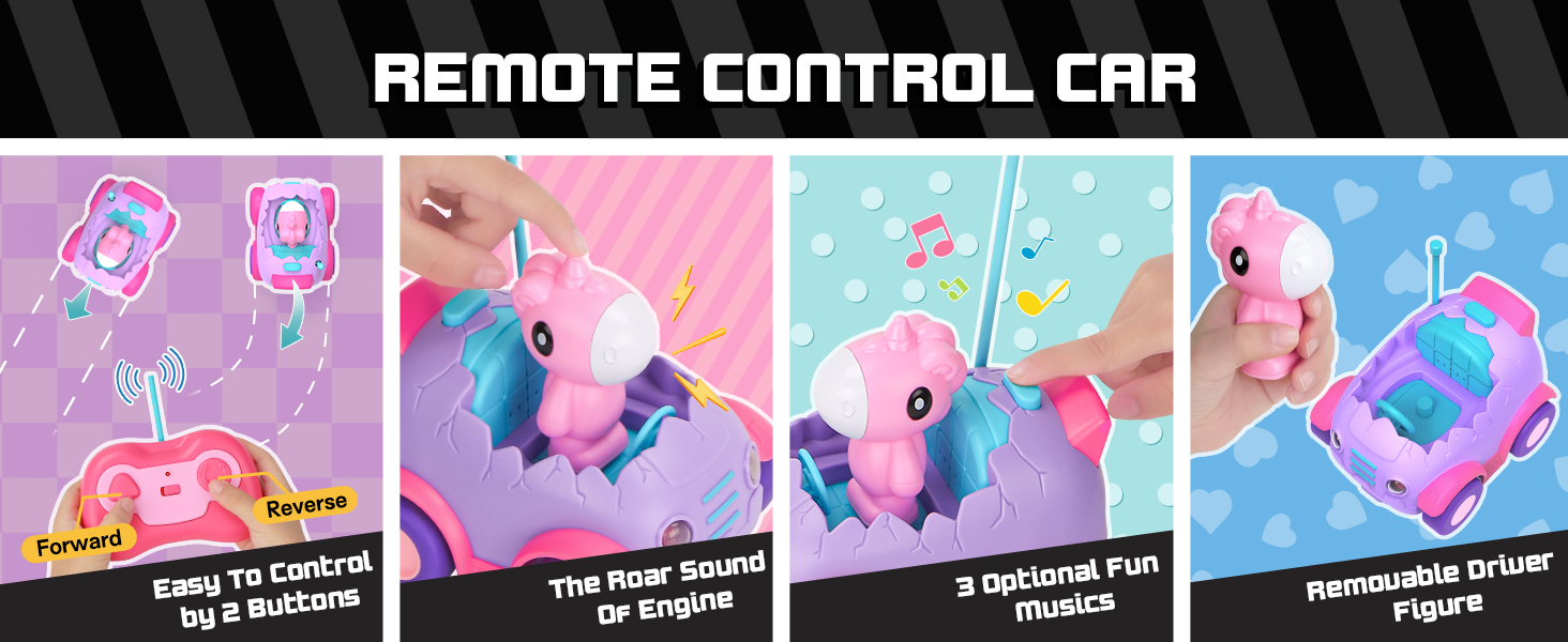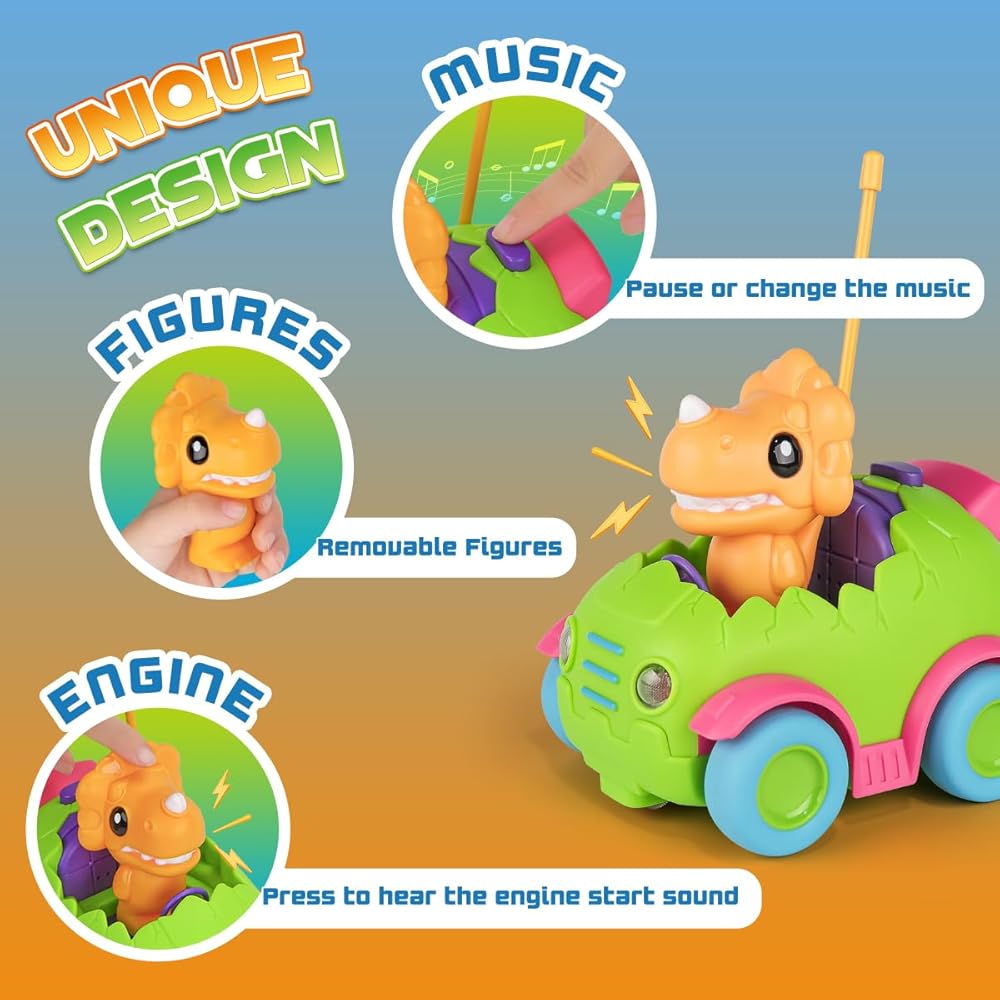 【Adorable Shape Cartoon Remote Control Car】The remote control car set included an adorable egg shaped car and a removable action figure with 3 fun musics and flashing headlights. Made from high-quality material, smooth round edges and burr-free, durable and safe enough for baby to operate.