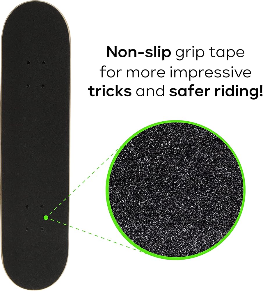 Sturdy and stable build: The complete skateboard deck is made using durable and sturdy maple wood to add strength and stiffness while also gives it a stylish flair; it offers more traction for your feet and gives better control when skating