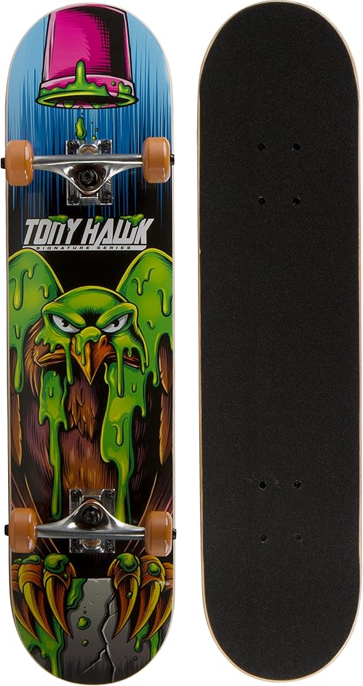 Tony Hawk Signature Series: The skateboard is suitable for all skill levels and part of the Tony Hawk Signature Skateboard Series. The skateboard provides just the right fit for Cruising, Carving, Free-Style, Downhill, and more while staying stylish the super cool graphics; it's designed with aluminum alloy trucks to offer more control and stability when riding