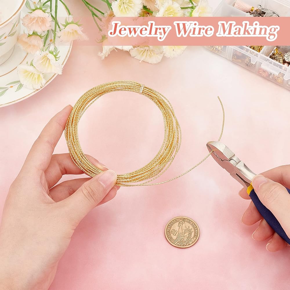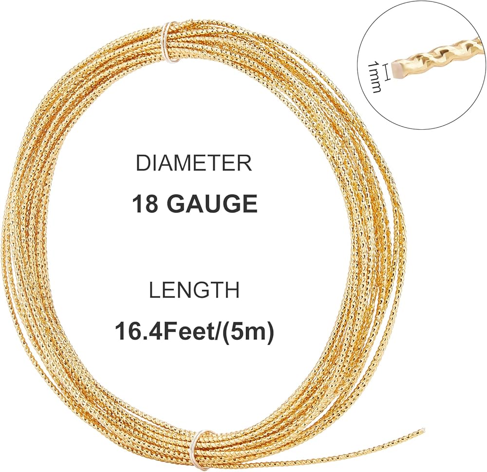 BENECREAT 16.4ft 18 Gauge 14K Real Gold Plated Engraved Twist Gold Wire Textured Copper Wire Half Hard Copper Wire for Jewelry Beading Craft Making
