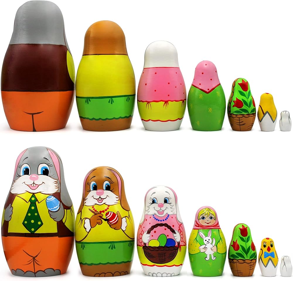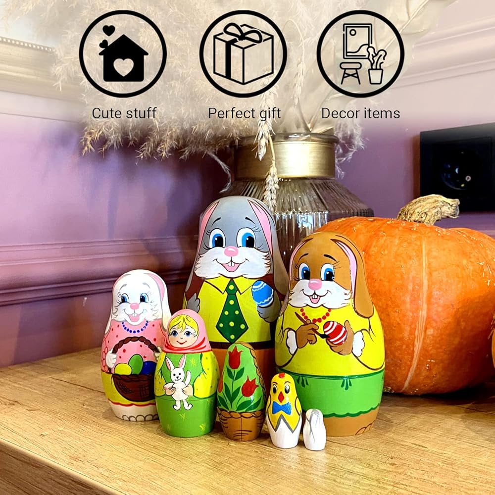 AEVVV Easter Nesting Dolls Set 7 pcs - Russian Dolls Easter Bunny Decorations - Russian Nesting Dolls Easter Gifts - Bunny Easter Decorations