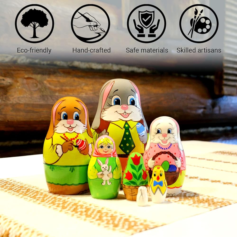 - FESTIVE DESIGN: Russian wooden nesting dolls painted as Easter bunnies figurines for Easter decor