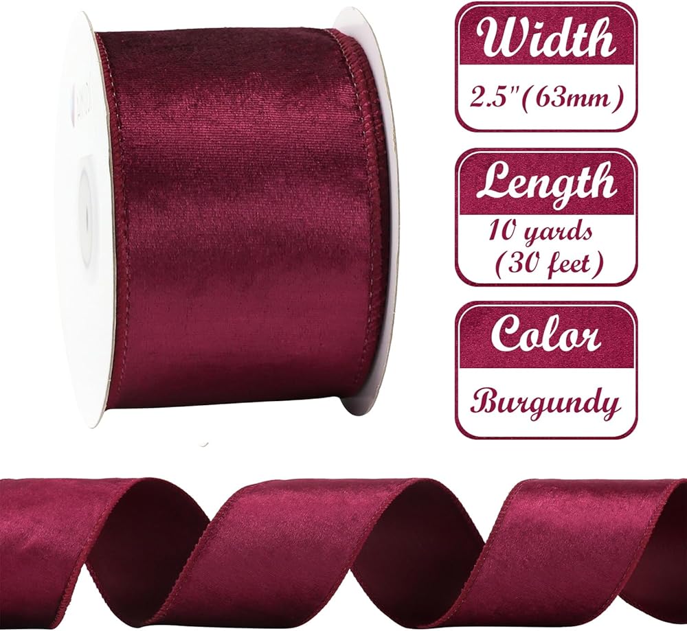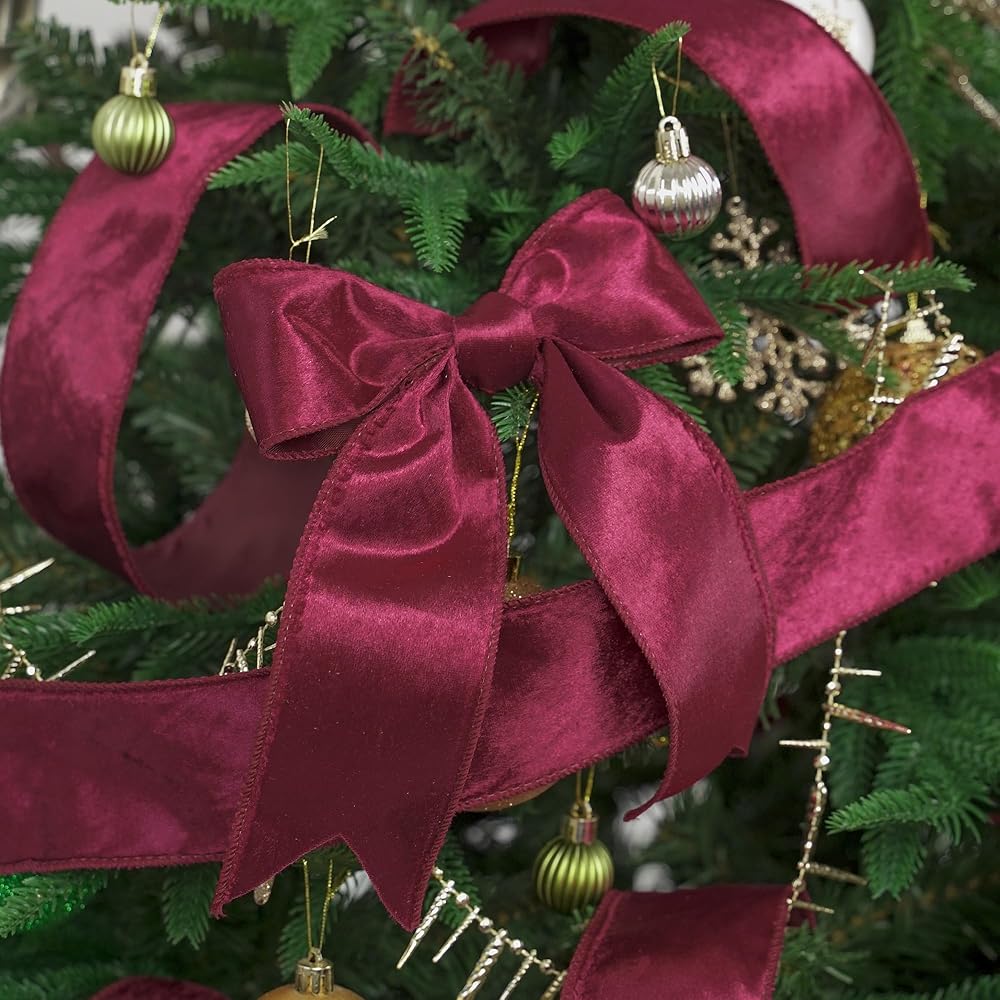 🎄[Elegant and Versatile]: Nothing says Christmas is here like spools of holiday ribbon, this Red Velvet Wired Ribbon will add beauty to any home. In hues of red this item is perfect for wrapping gifts, accenting decorations like wreaths and Christmas trees.