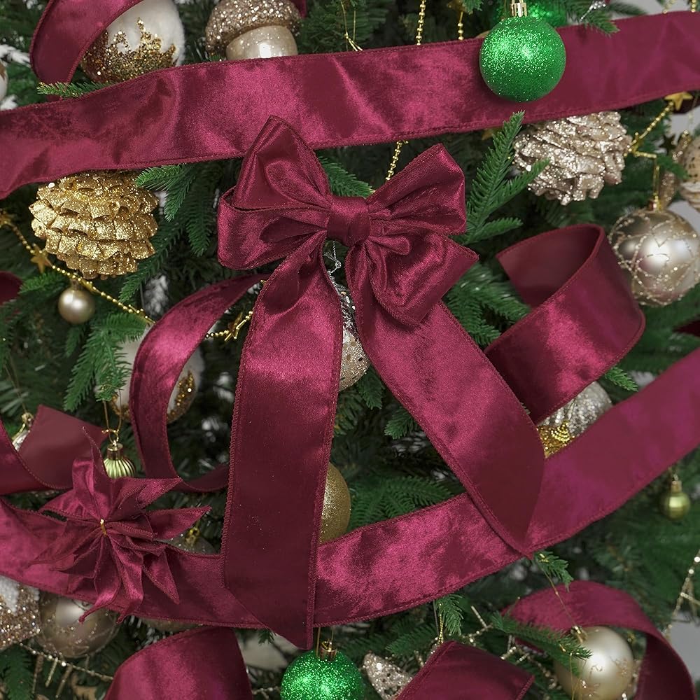 🎉[Premium Quality]: Luxurious and elegant ribbon with rich colors and textures, features glossy red velvet ribbon with same color fabric backing. Add a vintage appeal to your Christmas festivities using this chic, versatile ribbon. This isn't just a craft accessory, it's a way to weave enchanting holiday memories.