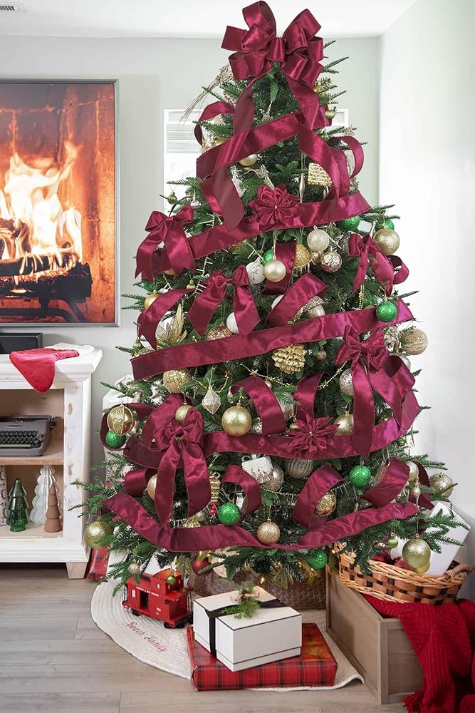 💗[Spread Festive Joy]: Share the cheer of Christmas with your loved ones by using this ribbon to your holiday gift wrapping, Christmas trees, mantels, wreaths, bows making, crafts, garlands, swags, stairways, banisters, tree toppers, tablescapes, floral design, candle wraps, the possibilities are endless.