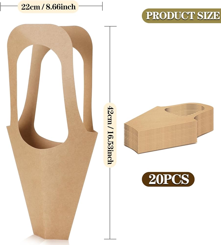 High-Quality Material + Quantity: xialgshe is made of high-quality kraft paper, the package contains 20 pieces of conical kraft paper flower gift bags, our flower gift bags are not only durable, but also environmentally friendly, ideal for displaying beautiful bouquets or floral arrangements.