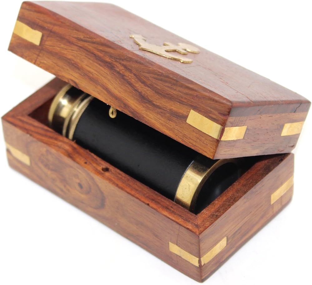 Govinda Handcrafted Nautical Spyglass - Brass and Leather 6 Inch Telescope with Rosewood Box - Gift for Maritime Enthusiasts and Kids' Telescopes Collectors