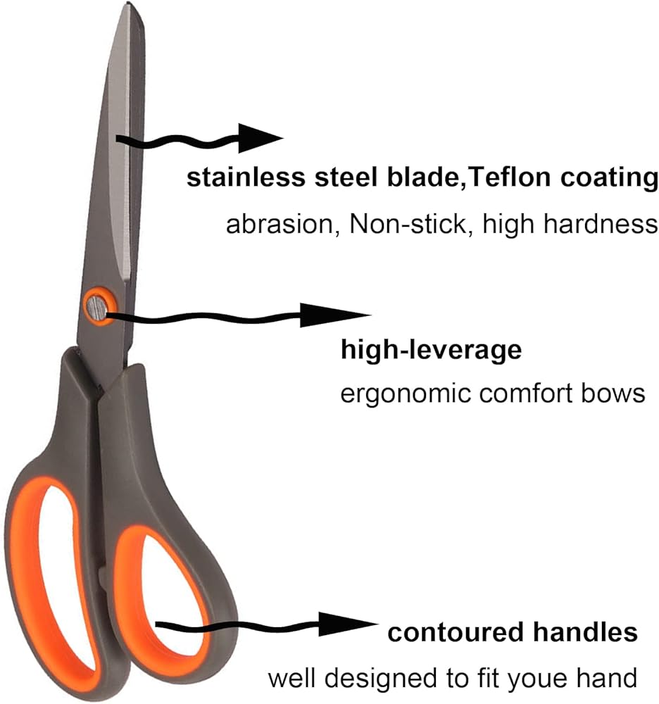 Whether cutting paper, cardboard, fabric, or photos, KUONIIY 8-inch scissors make a useful addition to any home or office.
