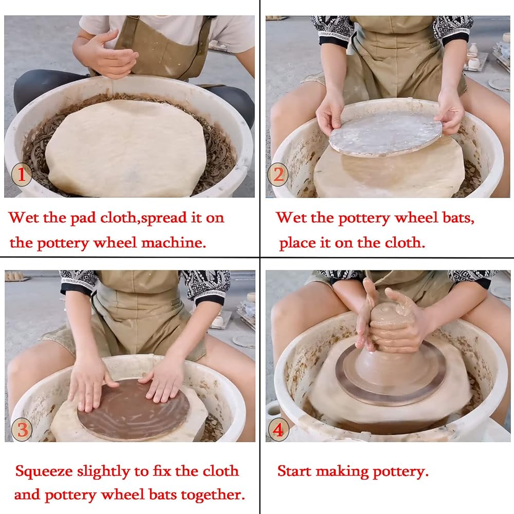 Easy to use.1.Wet the pad cloth,spread it on the pottery wheel machine.2.Wet the pottery wheel bats,place it on the cloth.3.Squeeze slightly to fix the cloth and pottery wheel bats together.4.Start making pottery.
