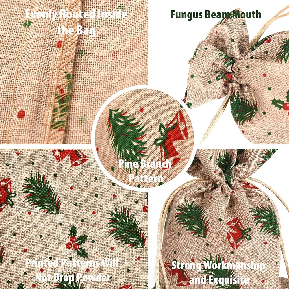 🤶HIGH-QUALITY MATERIAL: Our Christmas gift bags are made from high-quality cotton, sturdy and durable, and under fine workmanship, they are bright and beautiful, which are also capable for satisfying your repeated uses. The pattern on the bag will not fall off. It is very exquisite even the internal workmanship. You can try to compare it. Will never let you down.