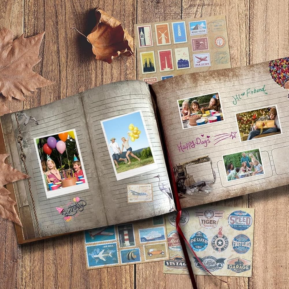 📷【Elegant 3D Design】Featuring a 3D embossed letter cover and a classic hardcover style, made with thick, non-fading craft paper, each scrapbooking book contains various retro page styles for a nostalgic touch.
