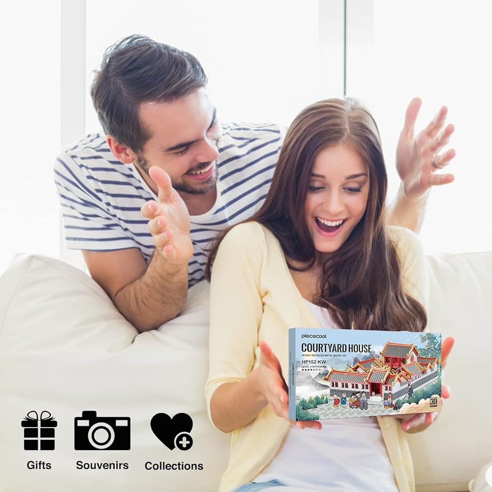 Piececool 3D Metal Puzzles, Beijing Siheyuan Courtyards House Model Kits to Build for Adults, Chinese Architecture Building Kit 3D Puzzle Best Gifts DIY Craft Home Decor - 203 Pcs