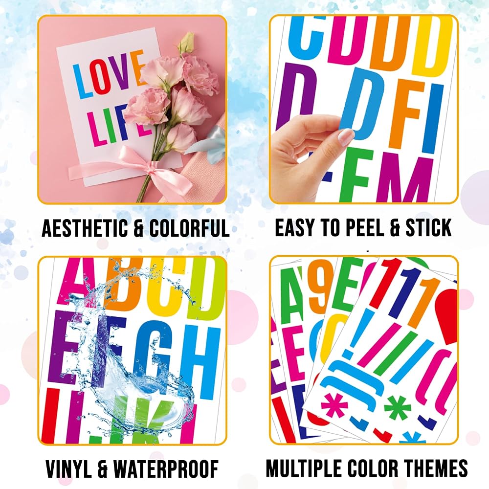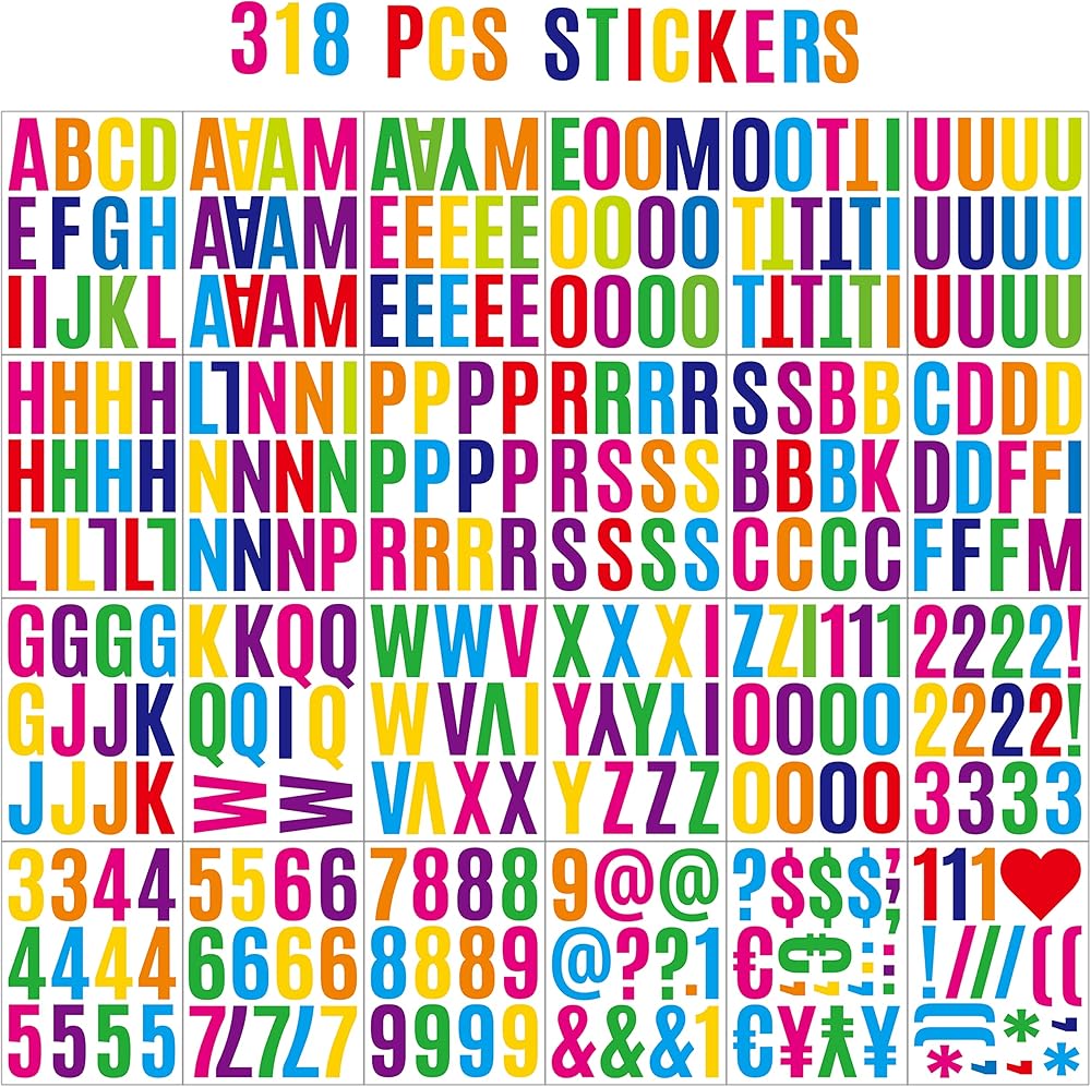 318PCS letter stickers include uppercase letters A-Z, numbers 0-9 and assorted symbols