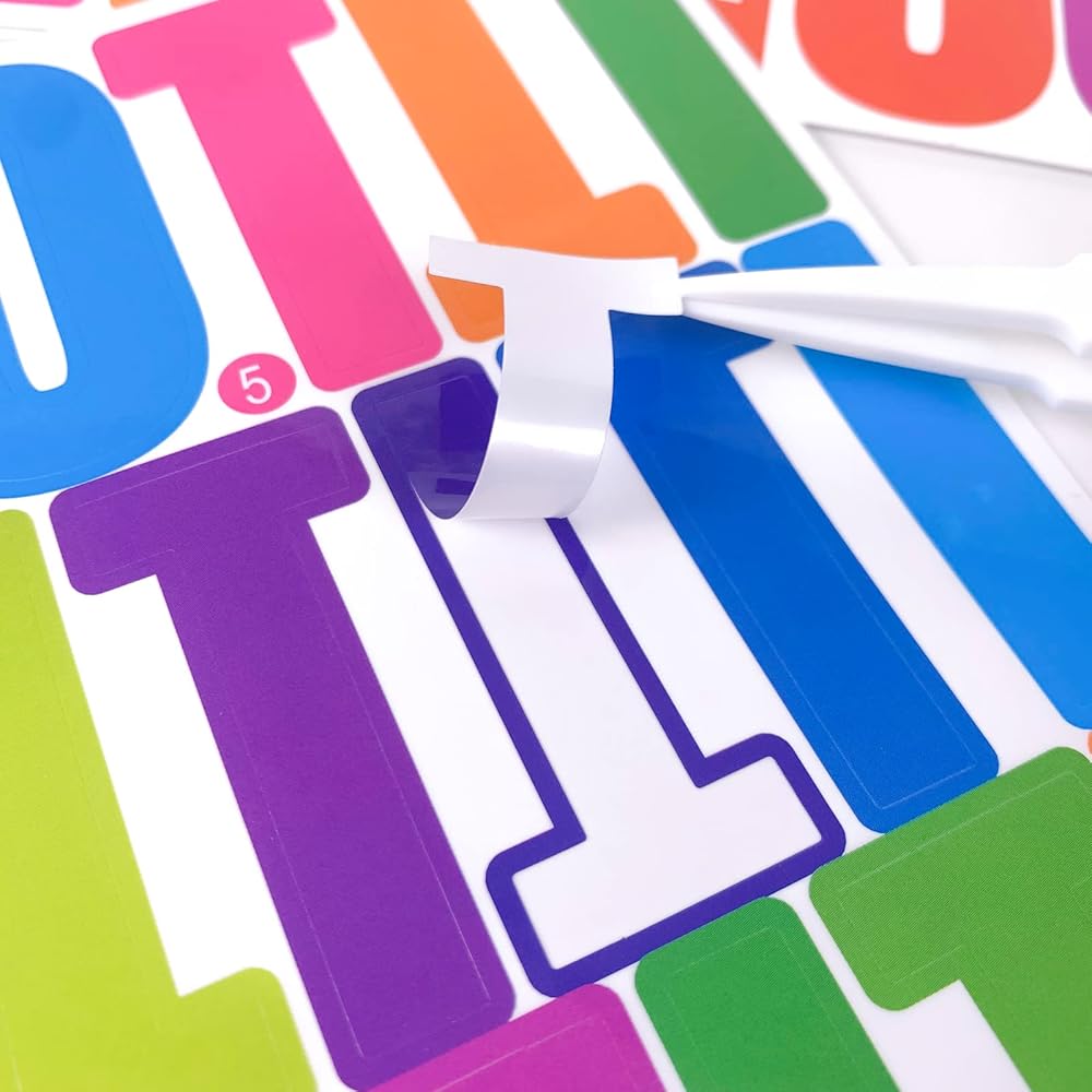 These 318 die-cut stickers are made of sturdy cardstock in assorted neon colors with fully adhesive backs. Each pack of 2" characters includes letters, numbers and assorted symbols. Your next sign or poster project will be a breeze!