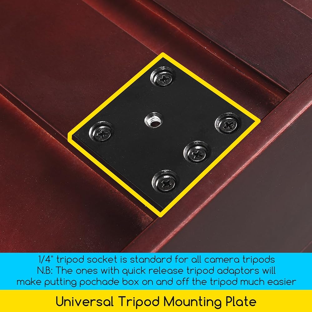 Universal Tripod Mounting Plate - This sketch easel box comes with a 1/4" tripod socket, which is standard for camera tripods. This means that all camera tripods can be used with this small art easel. N.B: We highly recommend the ones with quick release tripod adaptors because they will make putting the Pochade box on and off the tripod a lot easier.