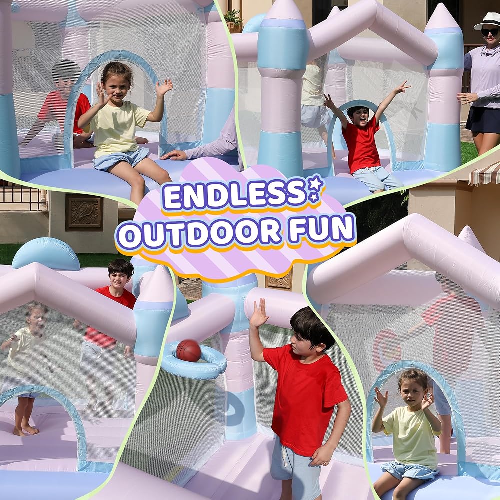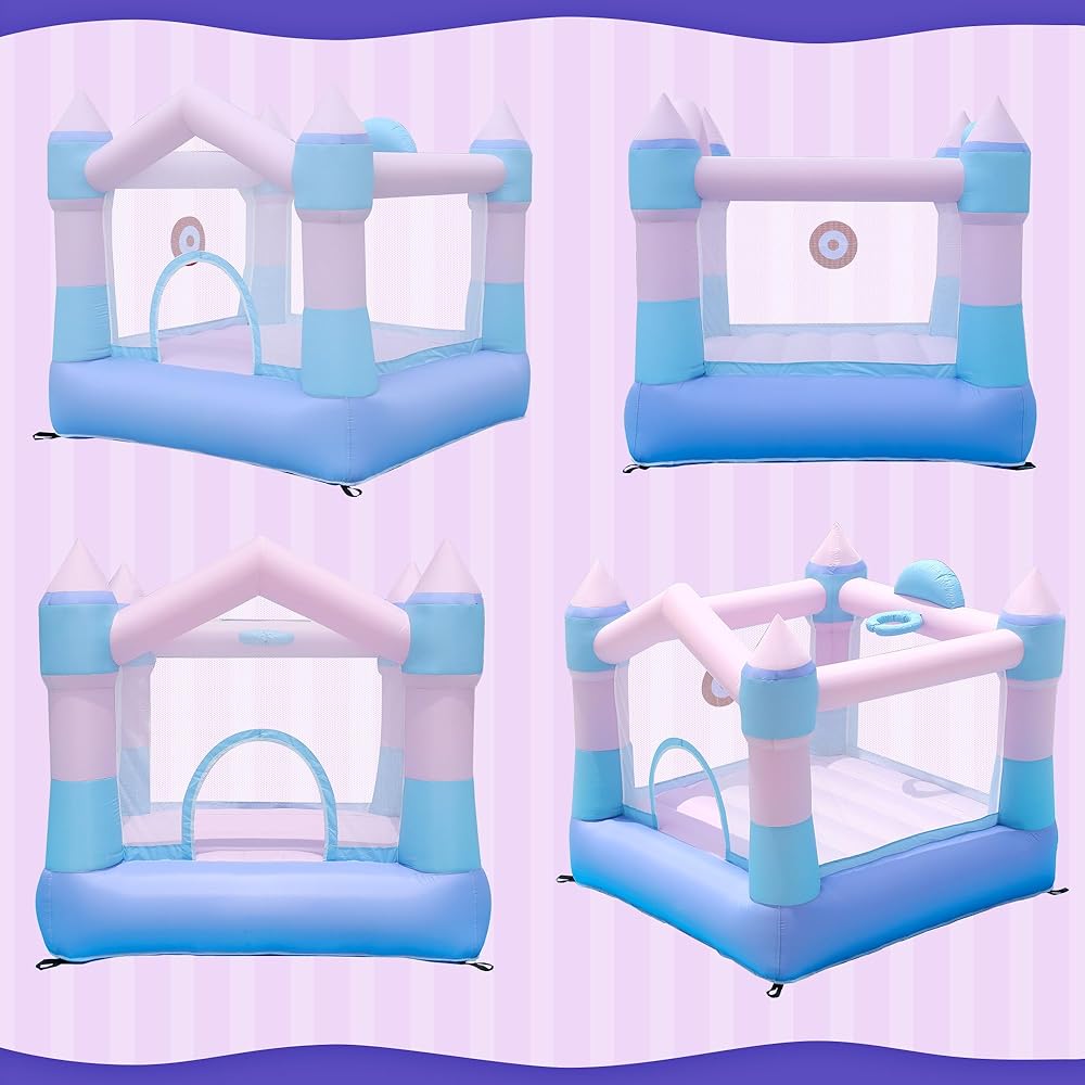 Mini Bounce House, Inflatable Bouncer with Blower for Kids 3-8, 7.05 ft L x 6.88 ft W x 6.39 ft H Bouncy Castle with Basketball Hoop, Target Game for Backyard