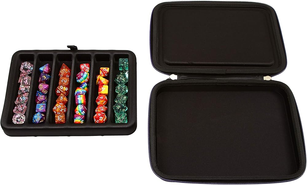 Go into battle prepared with the Forged Dice Co. Dice Case with removable slotted tray. At 10 inches by 7.5 inches and 1.5 inches deep it will fit up to 42 individual polyhedral dice or 6 standard sets. Built to be versatile and mobile. The removable slotted tray keeps dice in place and can be removed during game play so the bottom section can be used as a dice tray. If your in need of dice storage and a dungeons and dragons dice tray look no further. This case has you covered for both storage and rolling.