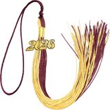 Double Color Graduation Cap Tassel with 2025 Gold Year Charm, 9 Inch Long