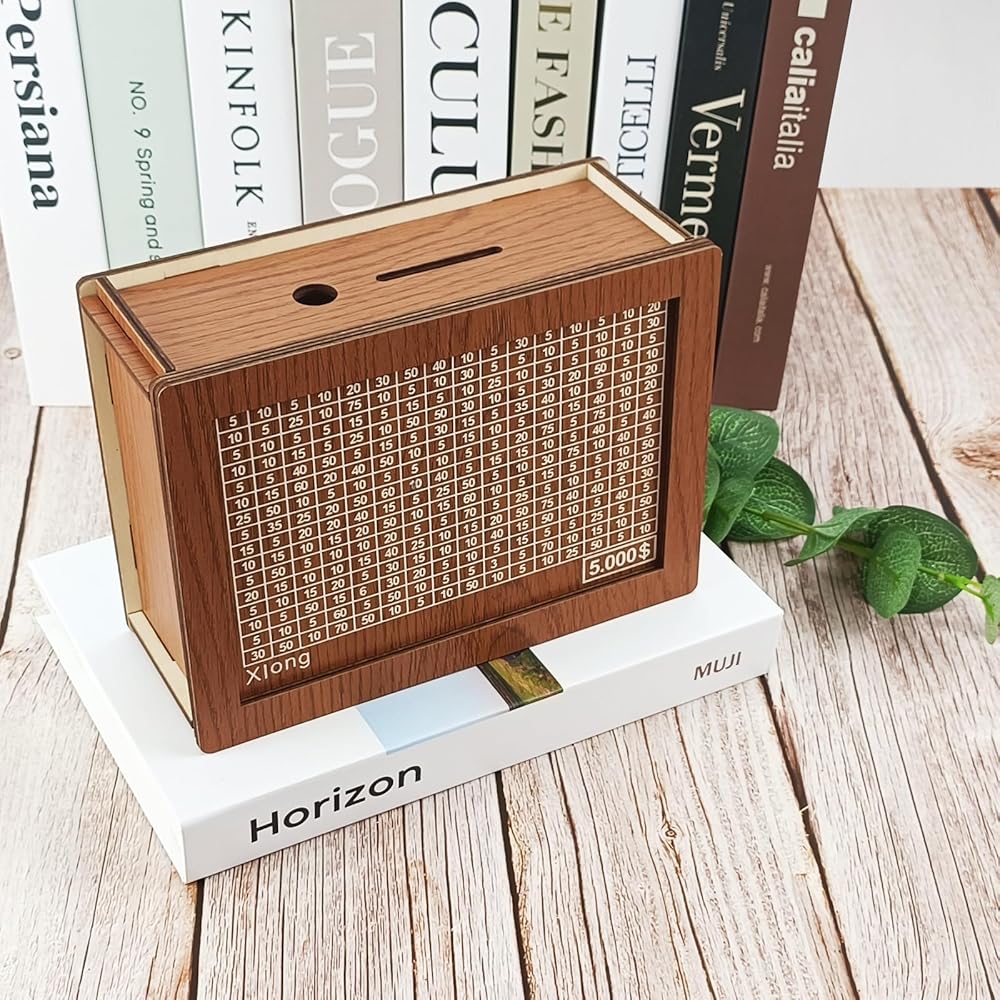 Wooden Adult Piggy Bank,Money Saving box,Piggy Bank for Adults Kids,Book Shape Piggy Bank with 5000$ Saving Challenge
