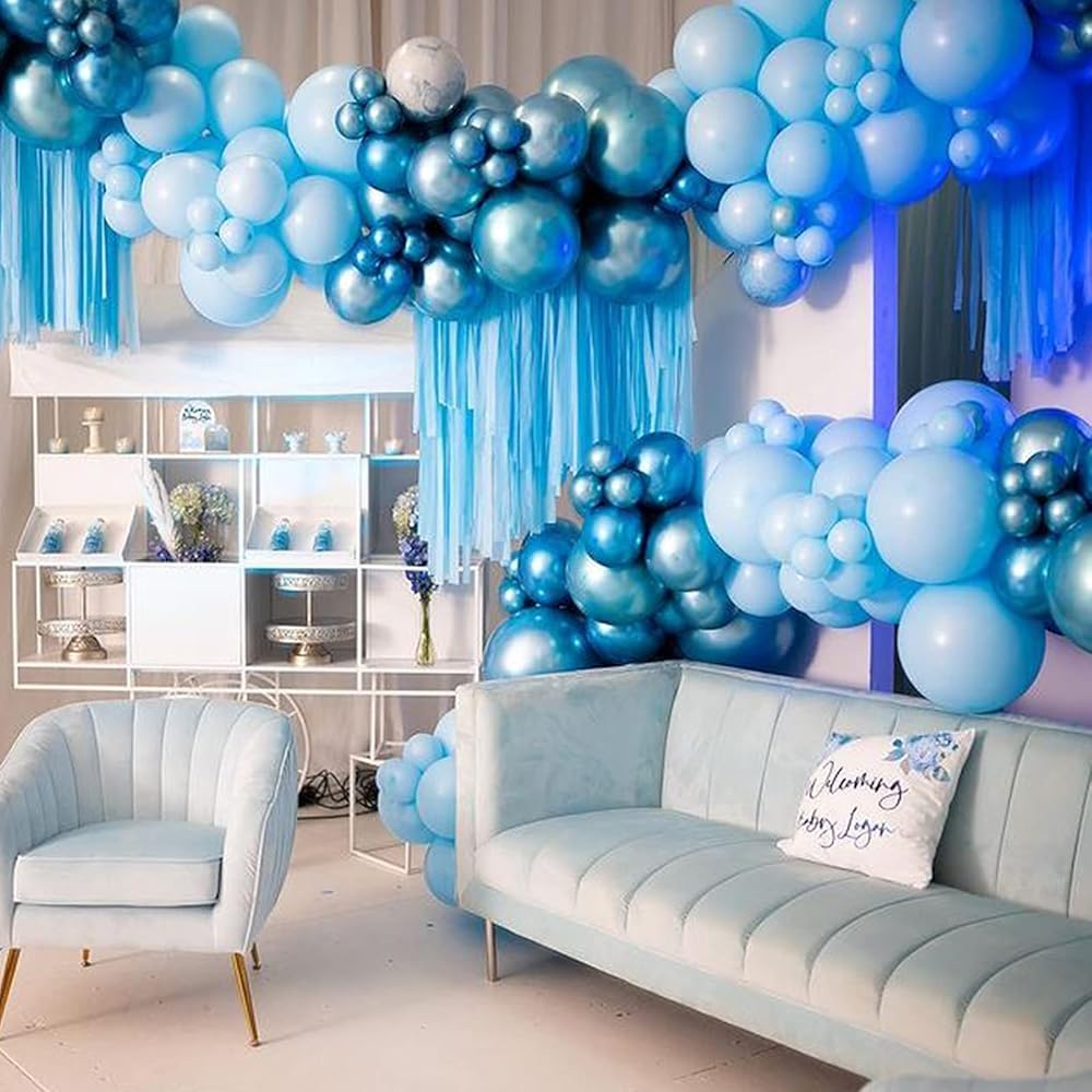 Felice Arts 161Pcs Boy's Birthday Blue Macaron Balloons Garland Kit Dark and Baby Blue Chrome White Balloons Arch Kit for Baby Shower Wedding Party Decoration