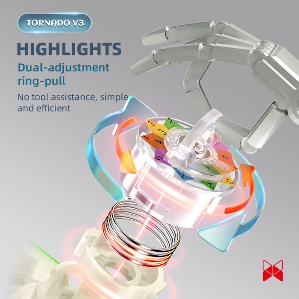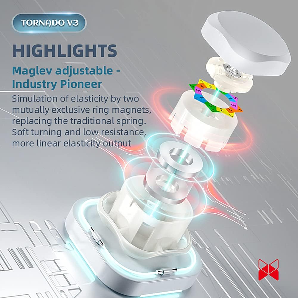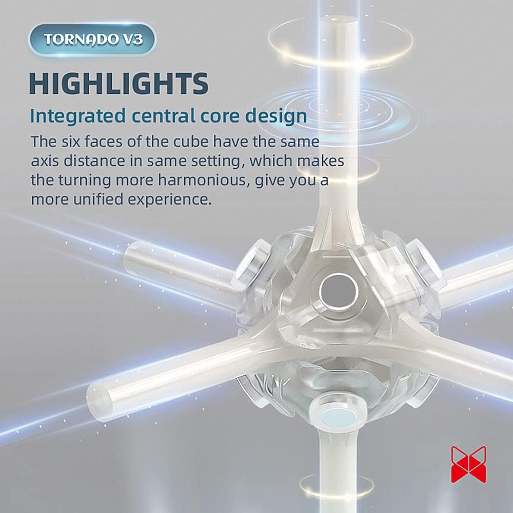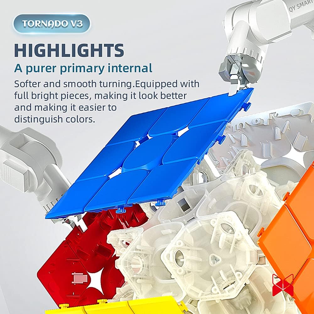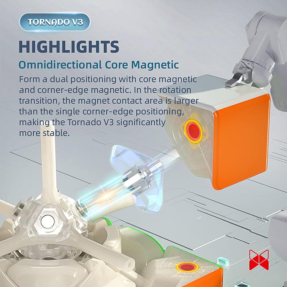 The Tornado V3 M is the latest flagship 3x3 cube launched by QY Toys in September 2022. This time, a total of 3 versions have been released. This one is the flagship magnetic version. For the first time, the core magnetic technology has been applied to the Tornado series.
