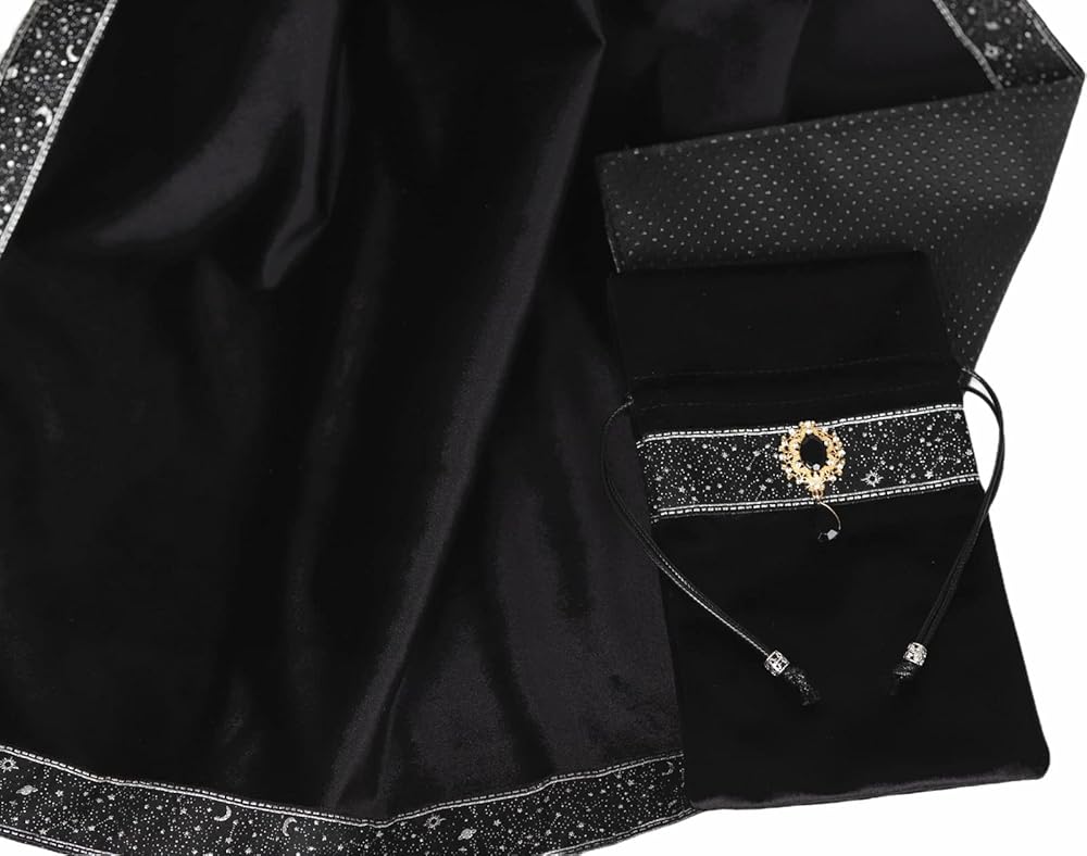 Tarot Cards Bag Divination Tablecloth Star River Lace Thickened Velvet Back Particle Bottom with Tarot Pouch(Black)