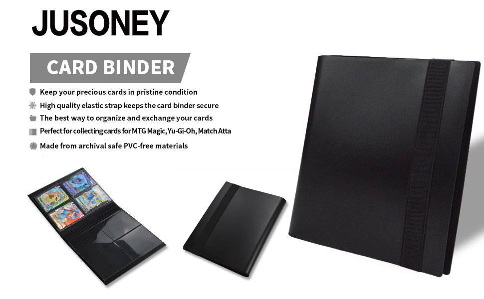 JUSONEY Trading Card Album - 160 Pockets Card Binder 20 Pages Pro 4 Pocket with Waterproof Black Book Cover, Perfect for Collecting Cards for MTG Magic, Match Atta
