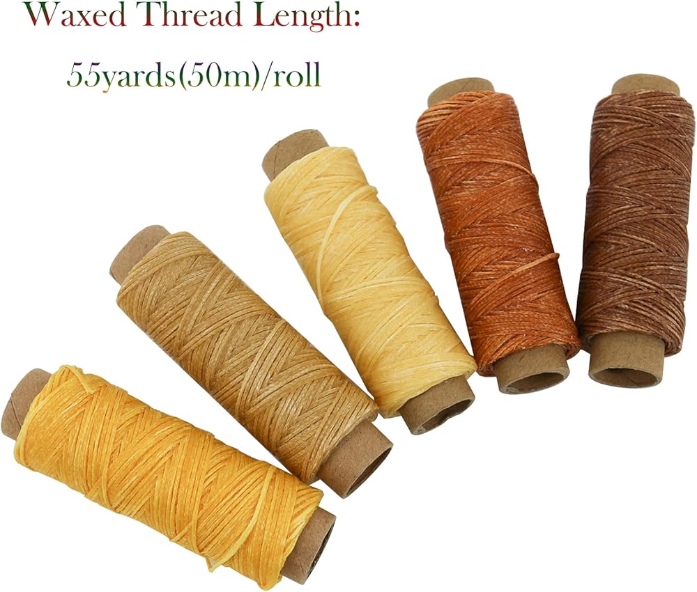 【Premium Quality Waxed Thread】Crafted with utmost precision, our waxed thread is made from high-grade materials to ensure superior quality. Each roll contains 55 yards (50 meters) of waxed thread, providing you with ample thread to complete a wide range of leather projects. The thread is meticulously waxed, resulting in enhanced strength, water resistance, and resistance to fraying.