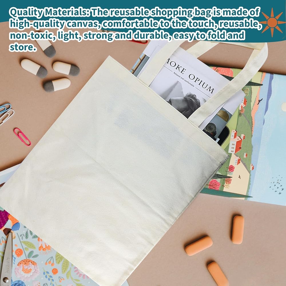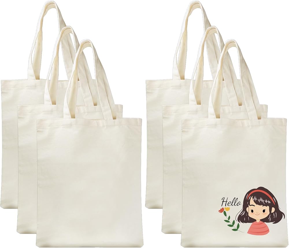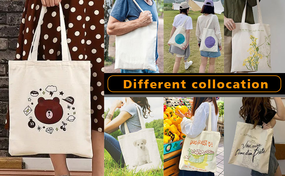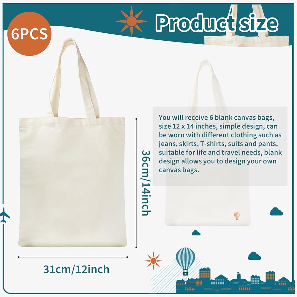 Quantity Abundant: You will receive 6 blank canvas bags, size 12 x 14 inches, simple design, can be worn with different clothing such as jeans, skirts, T-shirts, suits and pants, suitable for life and travel needs, blank design allows you to design your own canvas bags.