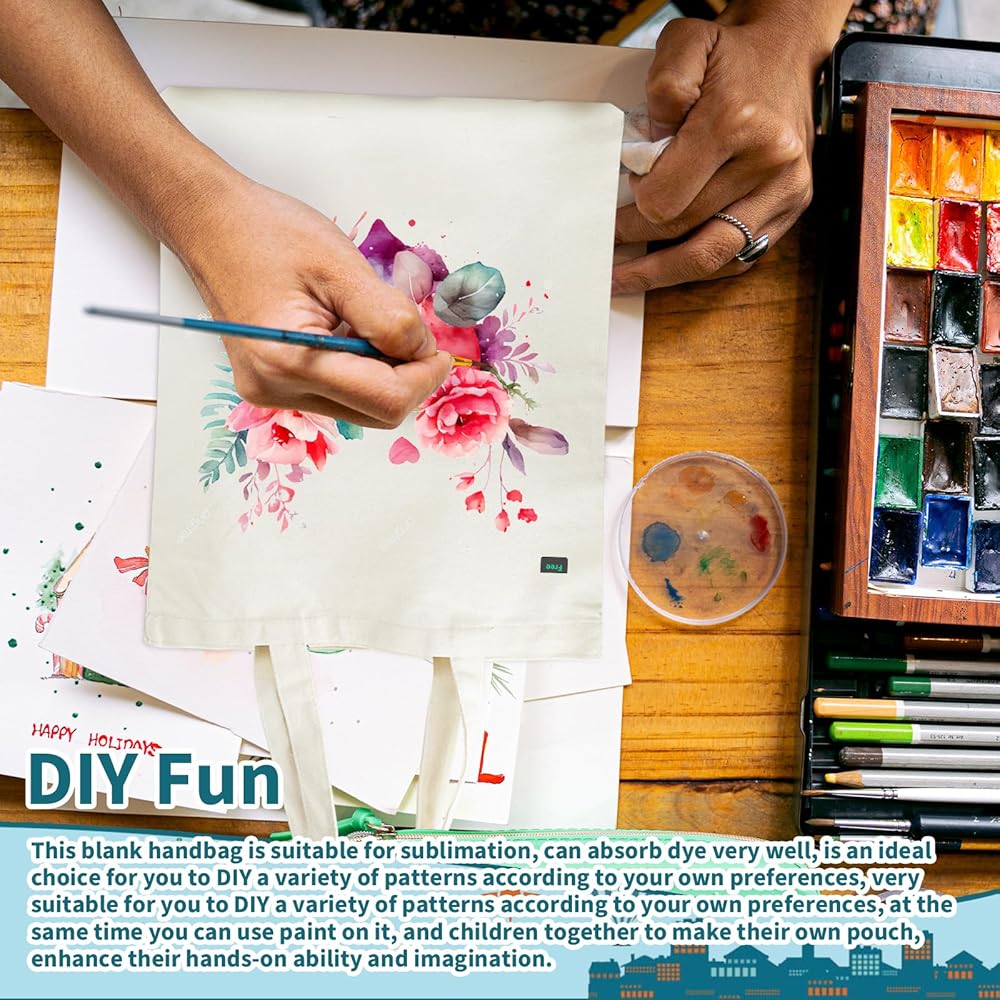 DIY Fun: This blank handbag is suitable for sublimation, can absorb dye very well, is an ideal choice for you to DIY a variety of patterns according to your own preferences, very suitable for you to DIY a variety of patterns according to your own preferences, at the same time you can use paint on it, and children together to make their own pouch, enhance their hands-on ability and imagination.