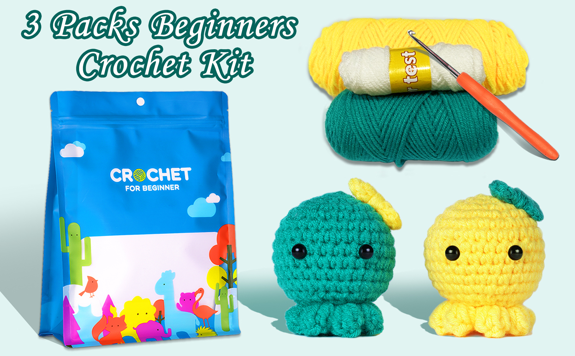 ❤CROCHET KITS FOR BEGINNERS Beginner crochet kit includes enough yarn, eyes, stuffing, crochet hook with an ergonomic handle, small scissor, and video tutorials. This crochet kits come with more than just materials – step-by-step videos and yarn(especially for beginners), you will enjoy your first crochet project!