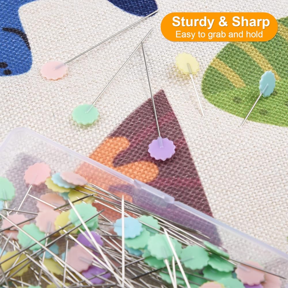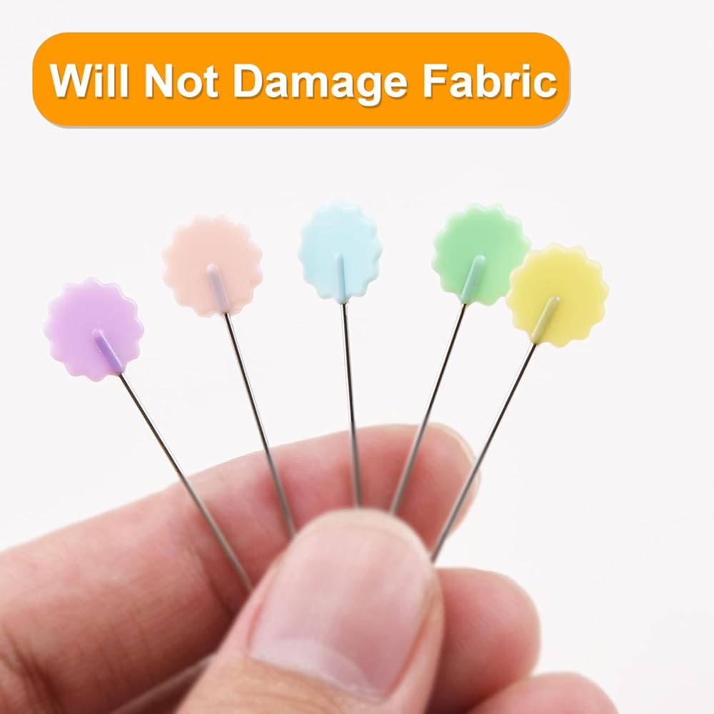 ✅【Thin Flat Head Pins】These sewing pins are thin and delicate, making it easy to stitch precisely without leaving large holes in the fabric. Not to damage fabric.