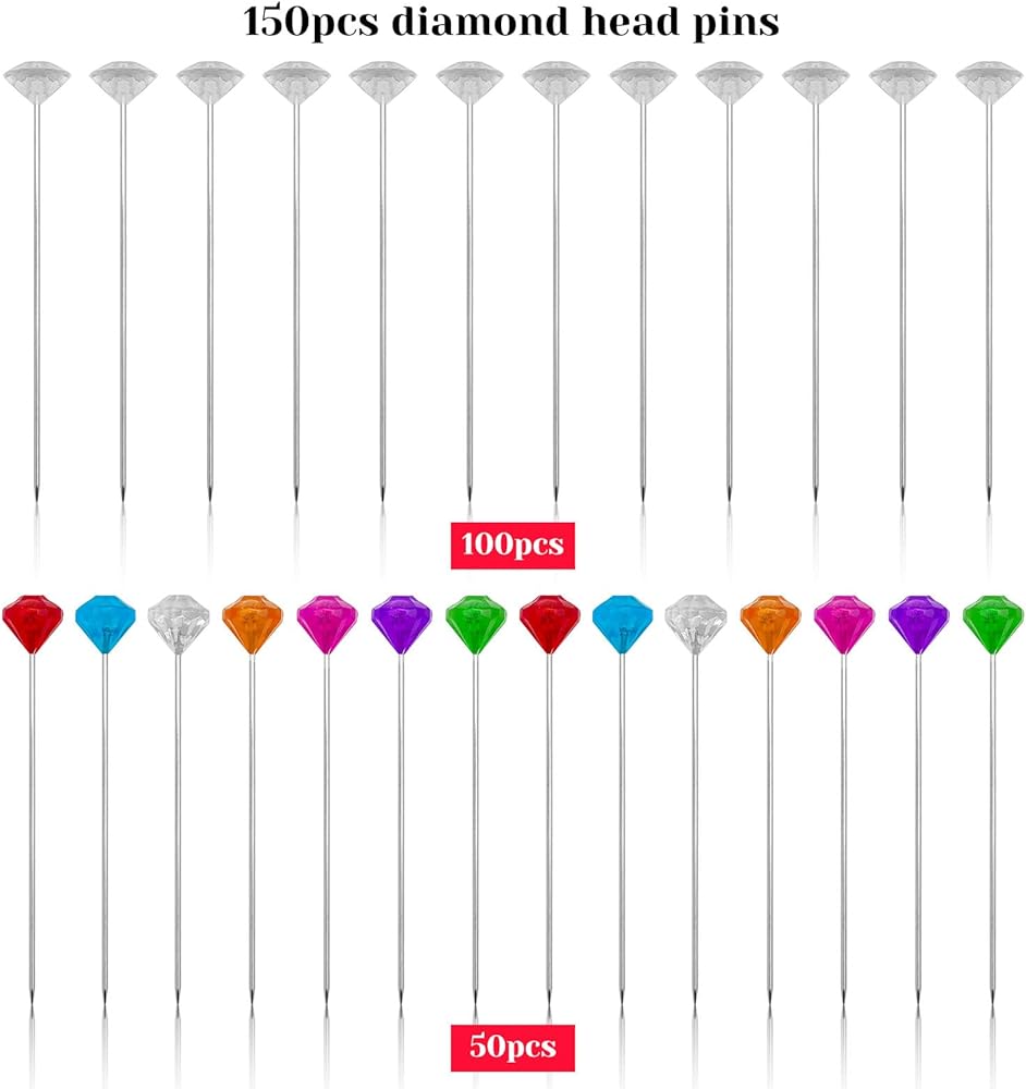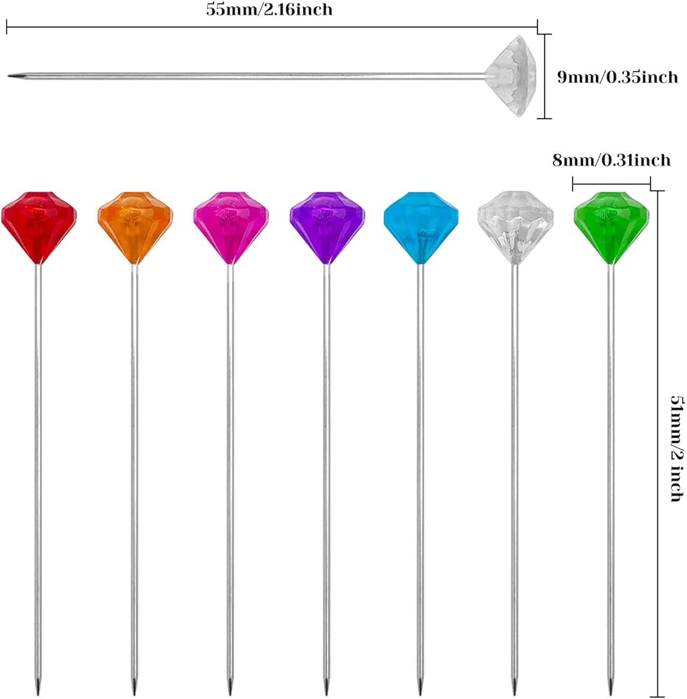 [ Diamond Head Pins ] You will receive 150pcs crystal diamond head pins, 100pcs clear diamond head pins, and 50pcs colored diamond head pins, which come in sizes of 8 mm/0.31 inch x 51 mm/2 inch and in different colors to suit your needs and better decorate your wedding crafts.