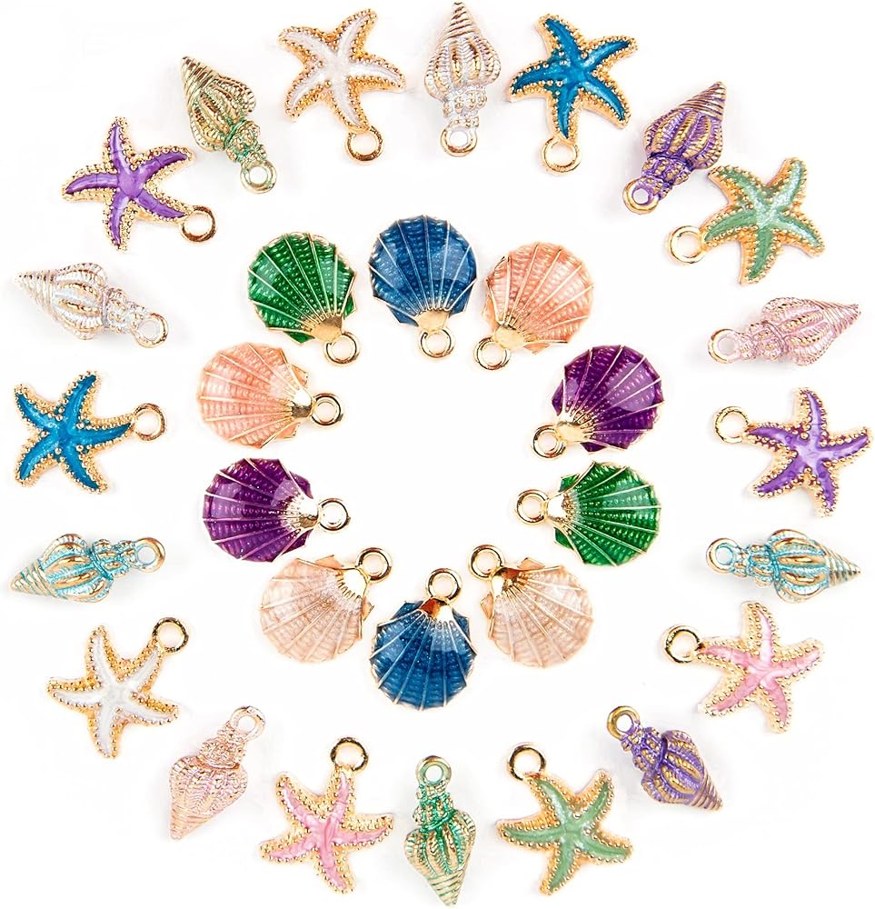 - PACKAGE INCLUDES: 30 x Ocean Charms, including 10pcs starfish / 10pcs conch / 10pcs seashell