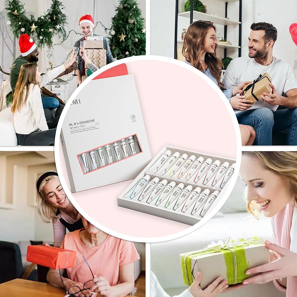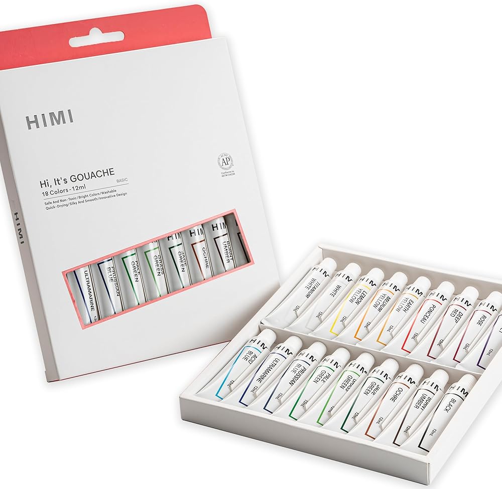 HIMI Gouache Paint Tube Set -18 Colors 12ml, with Rich Pigments, Gouache paint Non-Toxic, suitable for Beginners, Artists, and Hobby Painters. Beautiful Gifts for Art Supplies Painting(18 colors)