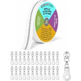 Zippers by the yard #5 with nylon coil teeth and 16 installed metal zipper pulls to make your own zipper; Cut-to-size long zippers for sewing; Durable and sturdy; Fit for indoor and outdoor use; Machine-washable and dryable; Colorfast and snag-free