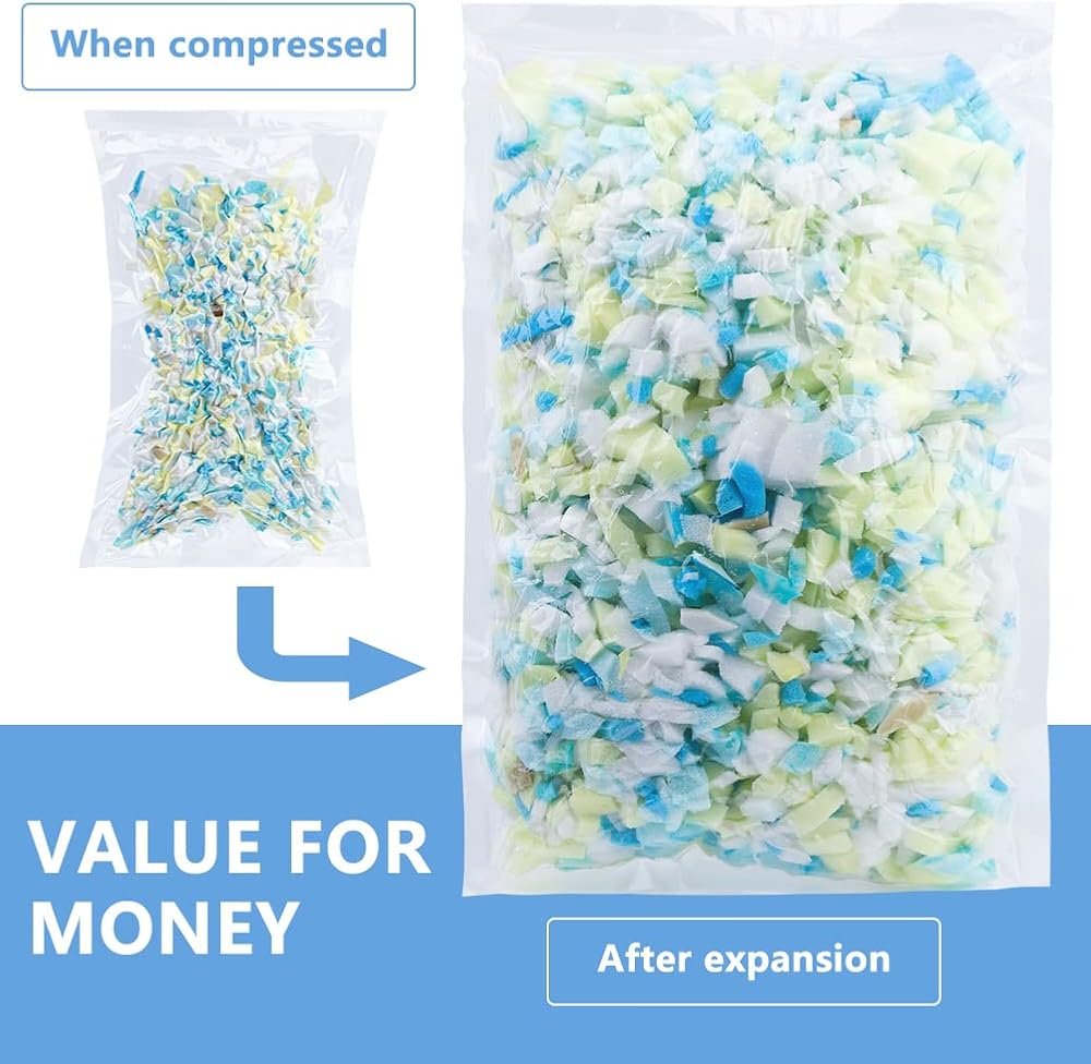 SOFT & COMFORTABLE: Compared to traditional refill beads and filling pellets, our premium memory foam bean bag filling is more comfortable and long-lasting, to renew all your specific projects, Simply re-fluff to bounce back to its original shape.