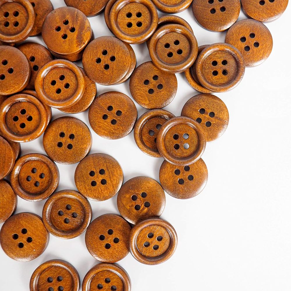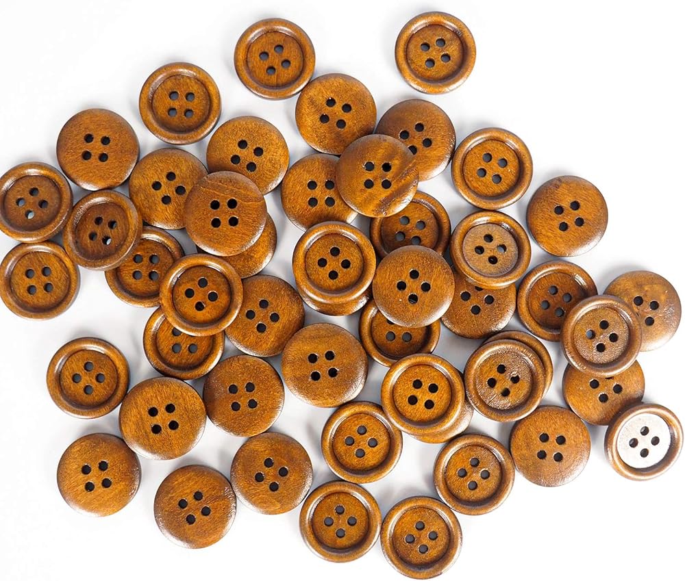 【Size】50 pcs of 0.79 inch (20mm) wooden buttons with the 4 holes about 0.079 inch (2mm), easy to pass the thread through.