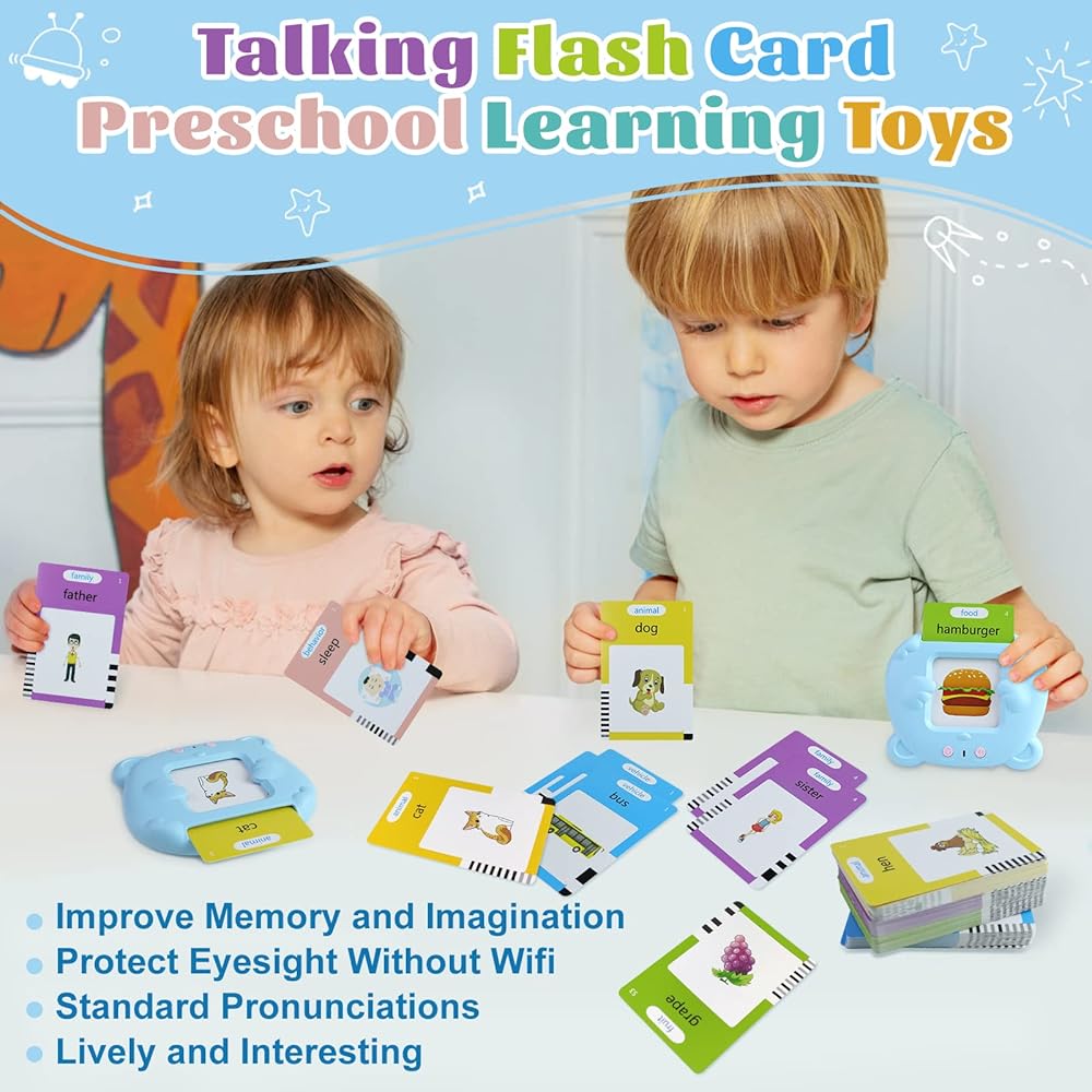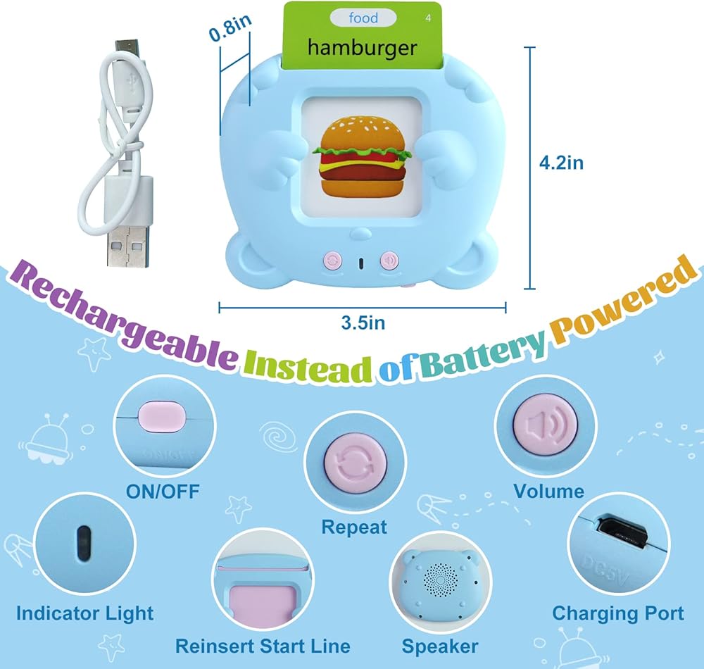 【Premium Quality】- This talking flash card learning toy for toddlers includes a learning card reader,charging cord and 255 double-sided flashcards(510 sight words).The cards are made of high quality ABS material.